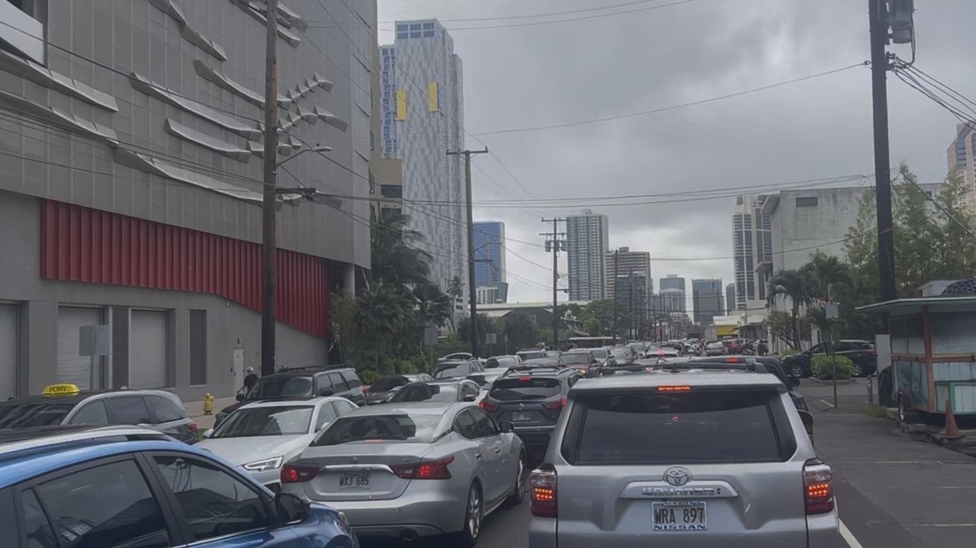 A traffic jam forms in Honolulu on Tuesday, July 29, 2025, as people heed a tsunami evacuation warning that coincided with rush hour following a powerful earthquakes in Russia's Far East early Wednesday.