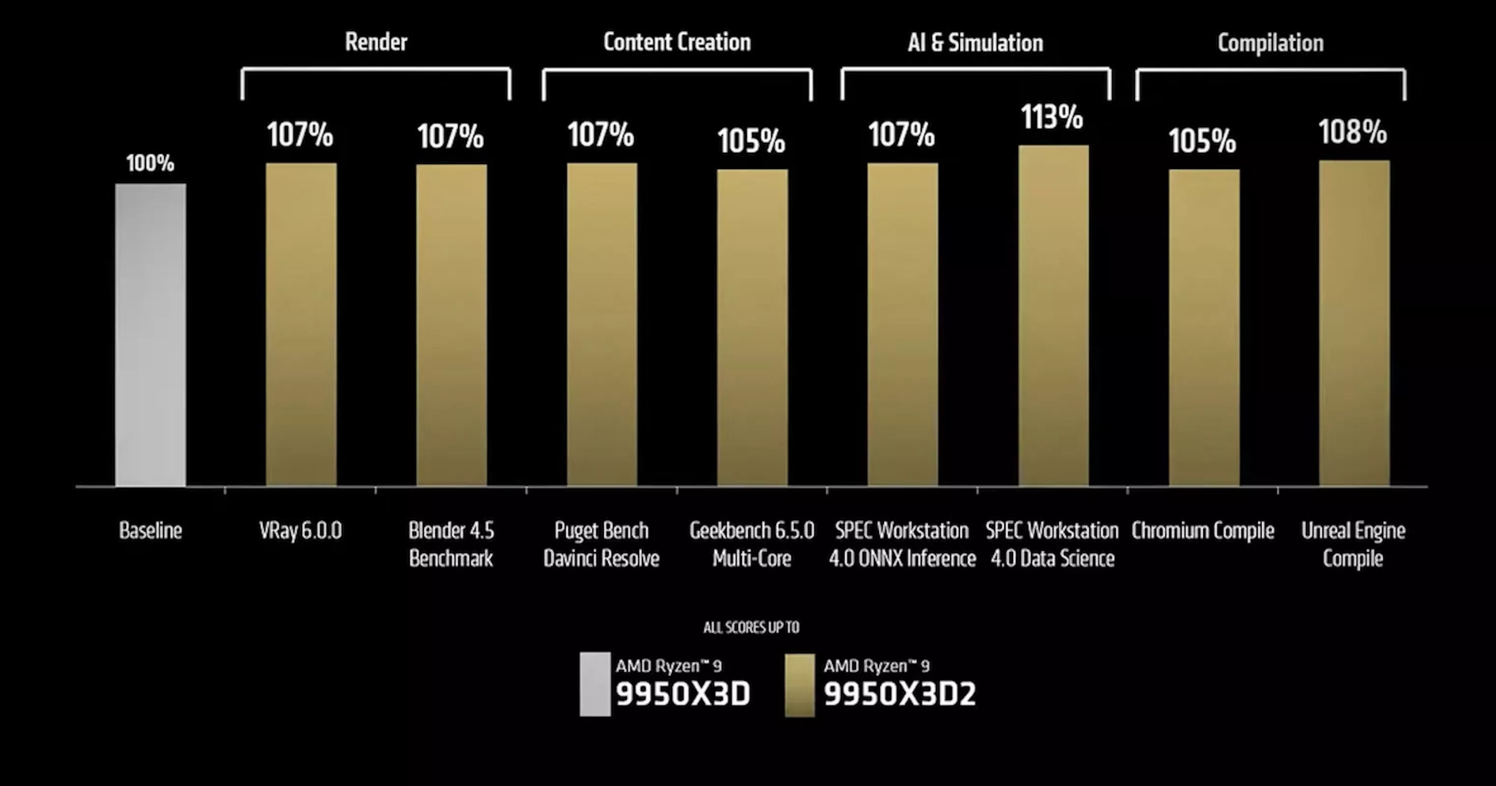 AMD says the chip can ship as much as 13% higher efficiency in AI and simulation workloads, round 7% features in V-Ray and Blender rendering, and 5% to 7% sooner ends in content material creation benchmarks, together with Puget for DaVinci Resolve and Geekbench multi-core.