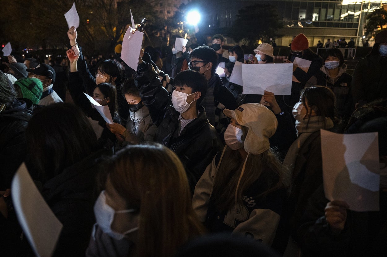 Throughout the nation, demonstrators took to the streets — a mass motion that’s uncommon in China — and defied legal guidelines designed to curb the unfold of COVID-19. Some appeared with sheets of clean white paper, rather than conventional protest indicators, as a criticism of the censorship limiting residents from talking freely.